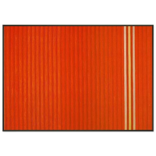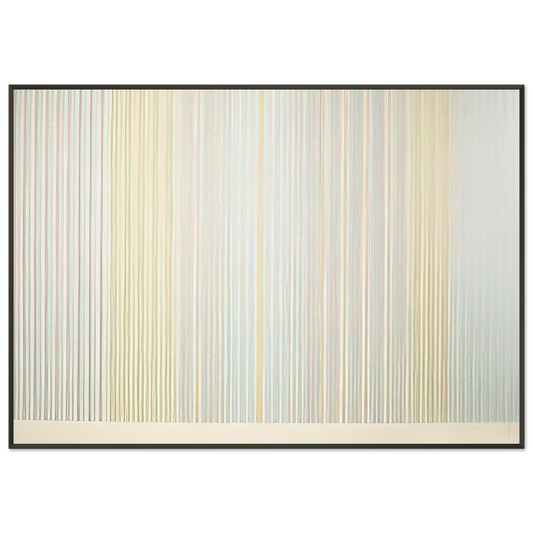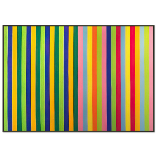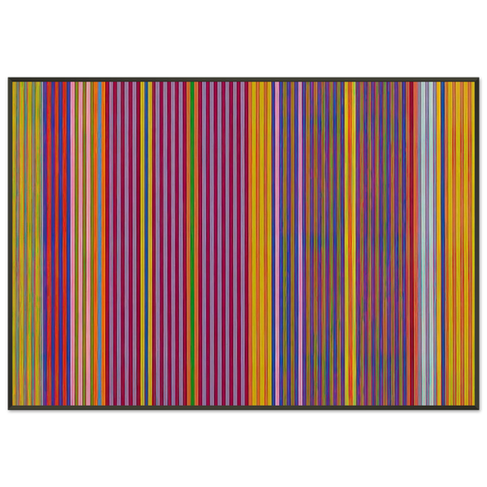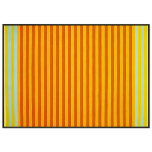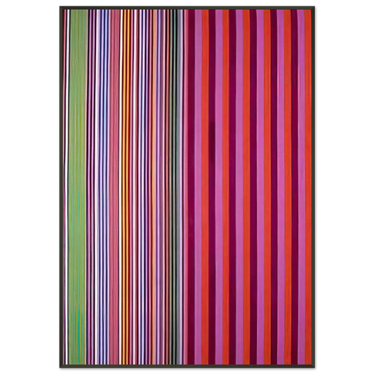To further elevate your acquisition and ensure a presentation worthy of such a distinguished artist, each Gene Davis art print is expertly mounted and presented within a sleek, contemporary aluminum frame. The minimalist, clean aesthetic of an aluminum frame serves as the perfect complement to the stark, yet dynamic, lines characteristic of Gene Davis's stripe paintings, culminating in a cohesive, impactful, and undeniably stunning visual statement. This premium framing choice not only dramatically enhances the artwork's immediate presentation but also guarantees lasting durability, protection, and a sophisticated, modern finish that integrates seamlessly into any high-end interior design scheme.
