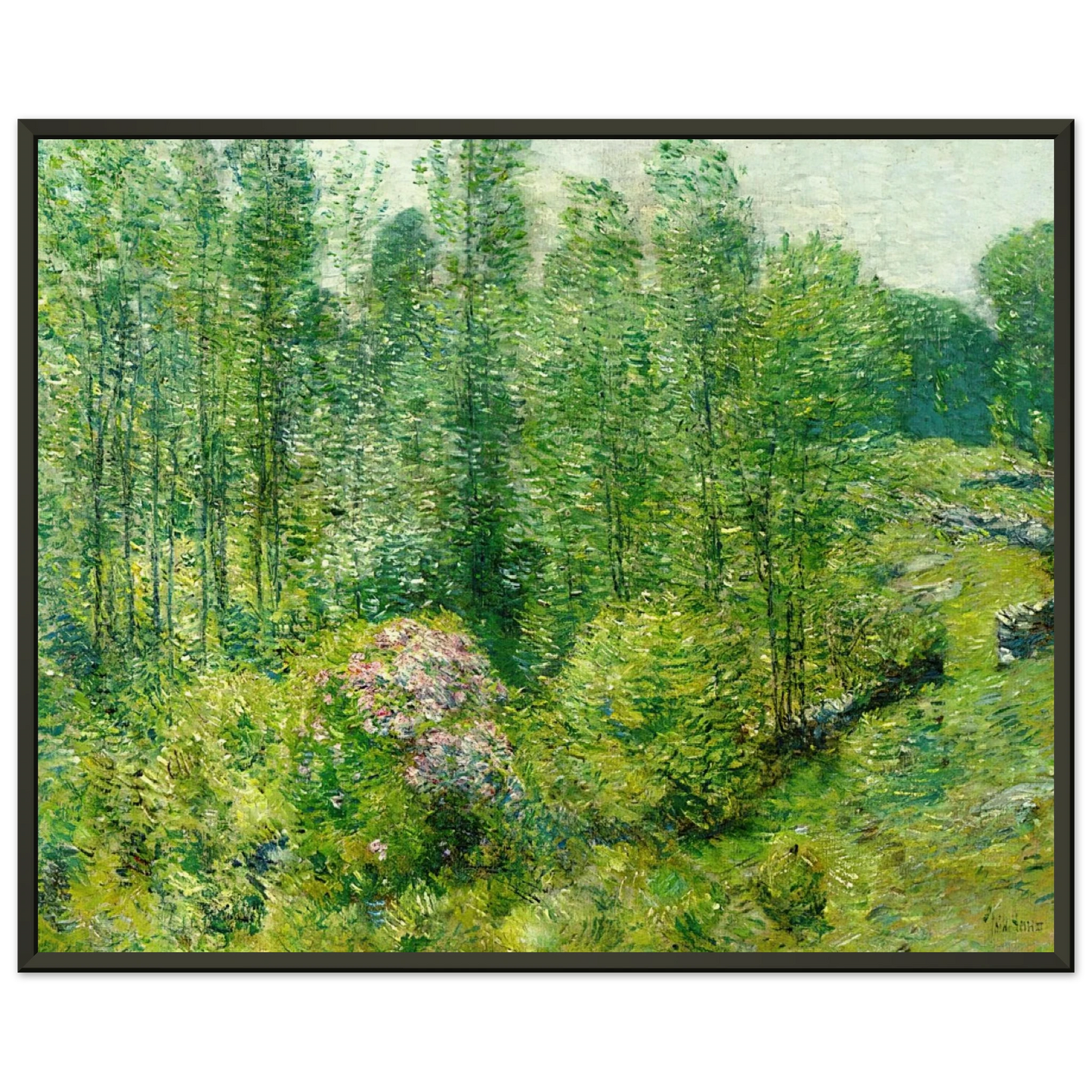 Childe Hassam Spring Landscape with a Farmer and White Horse Framed Art Print – Aluminum Frame