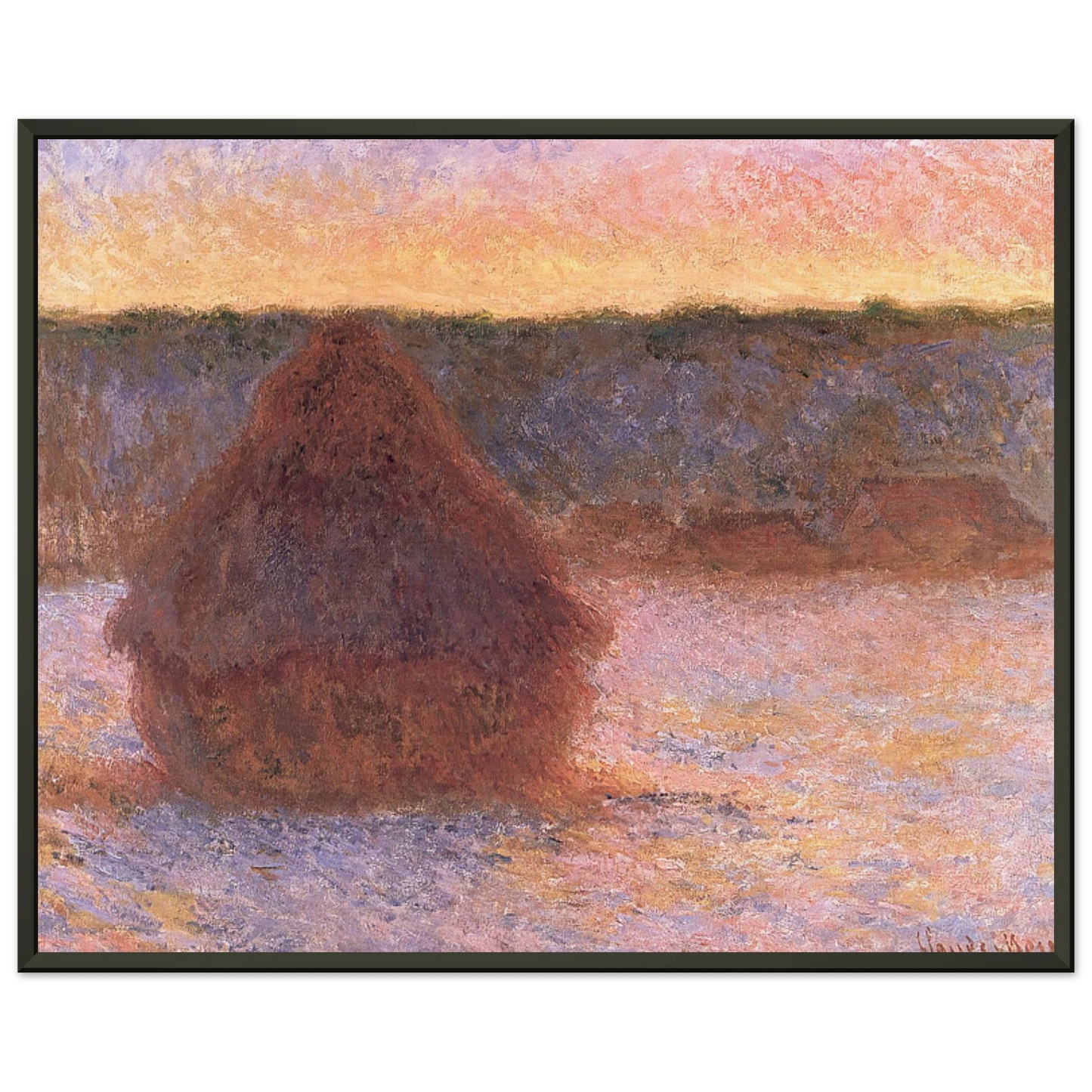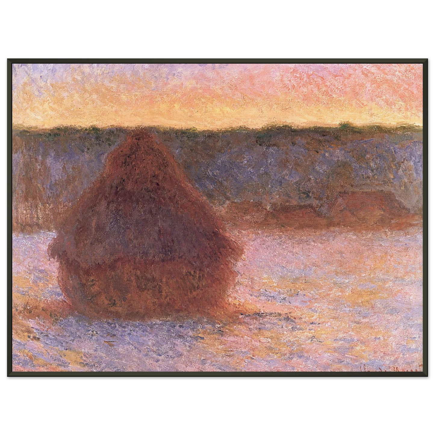 claude monet Haystacks at Sunset Frosty Weather Framed Art Print - Aluminum Frame
