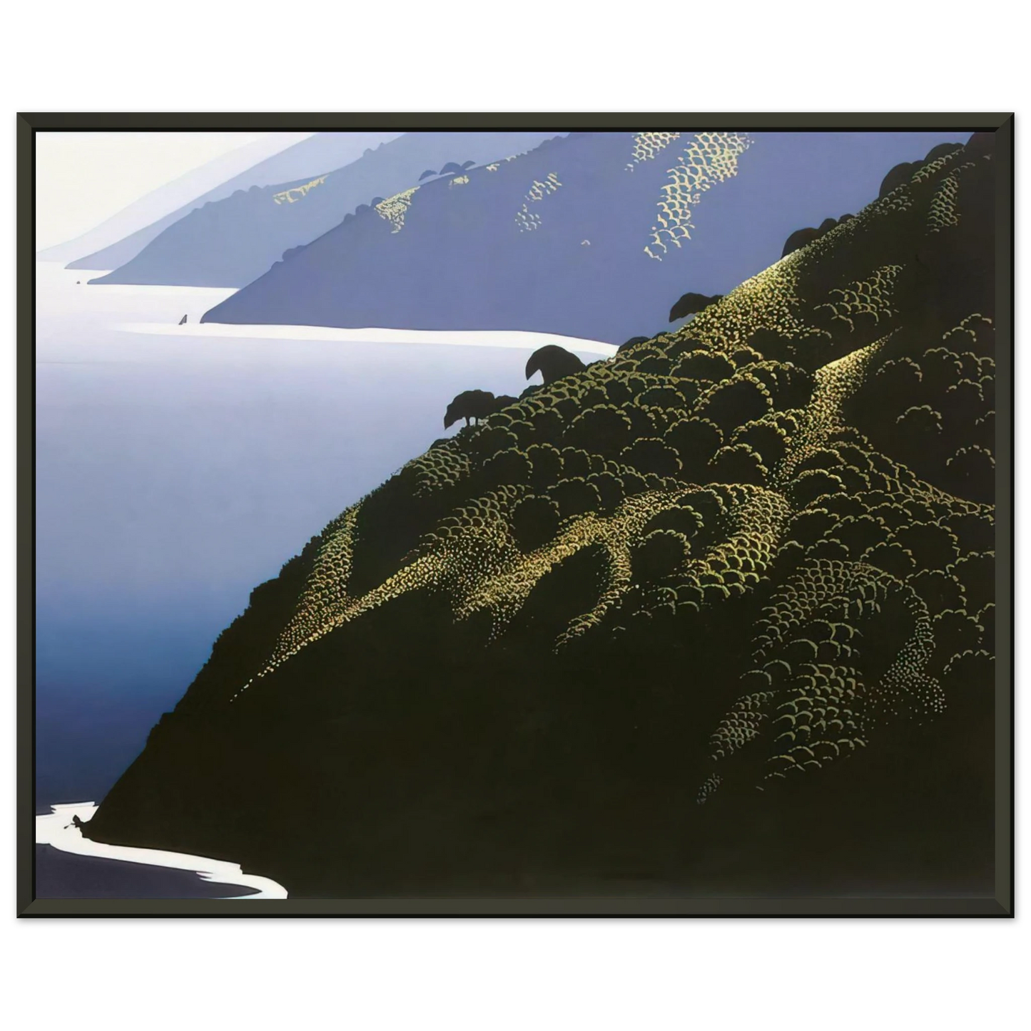 Eyvind Earle Big Sur Calm Framed Art Print - Aluminum Frame