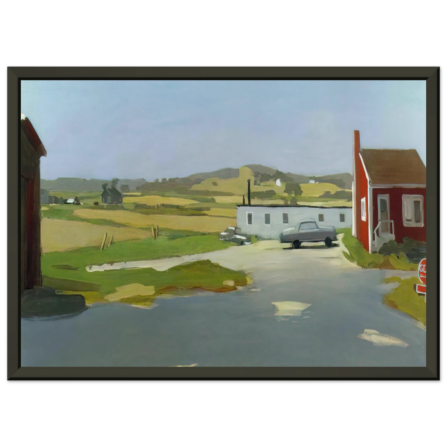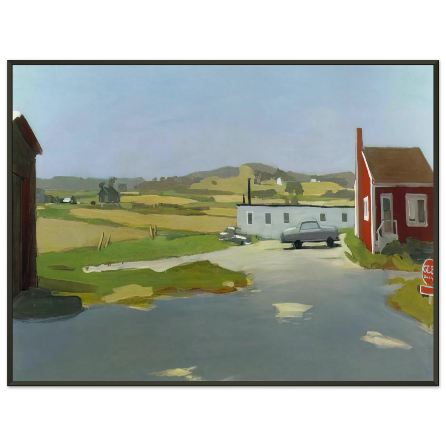 Fairfield Porter LONG ISLAND LANDSCAPE WITH RED BUILDING 1962 Framed Art Print – Aluminum Frame