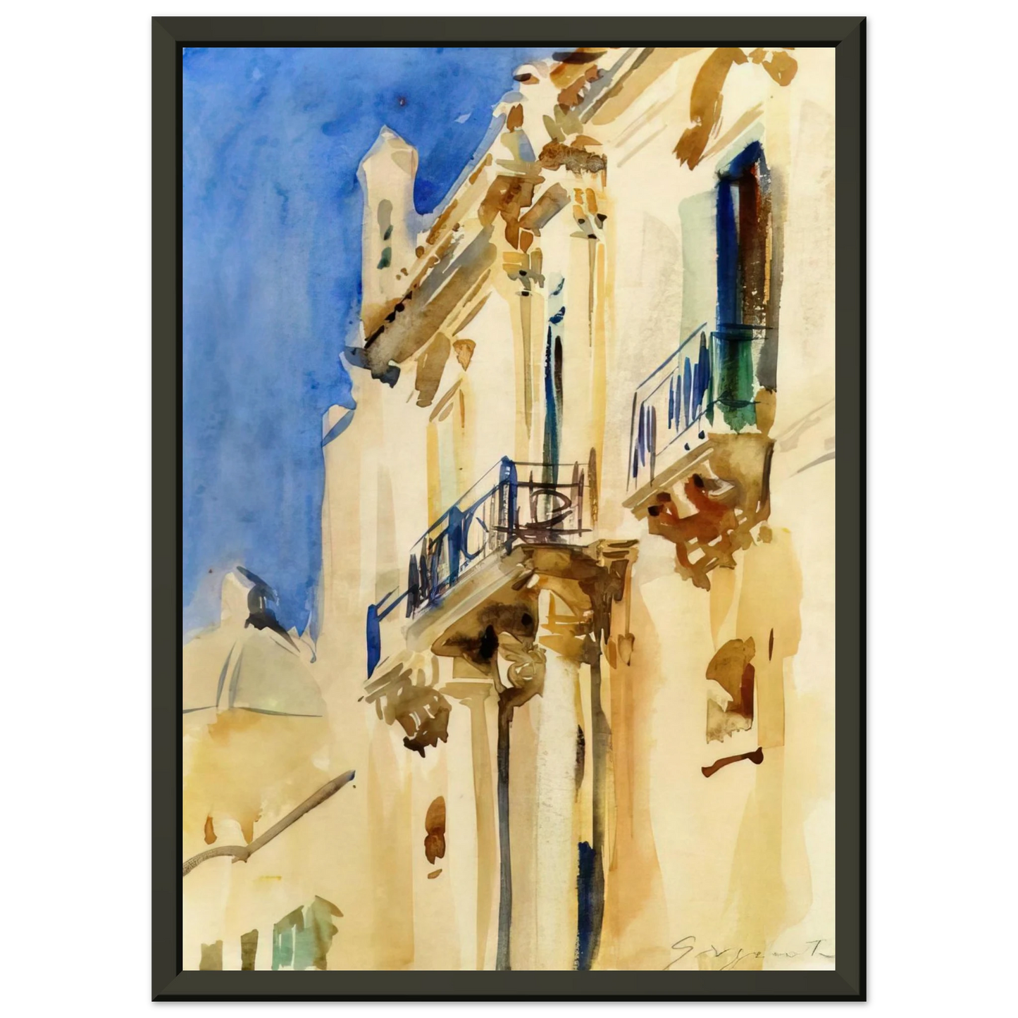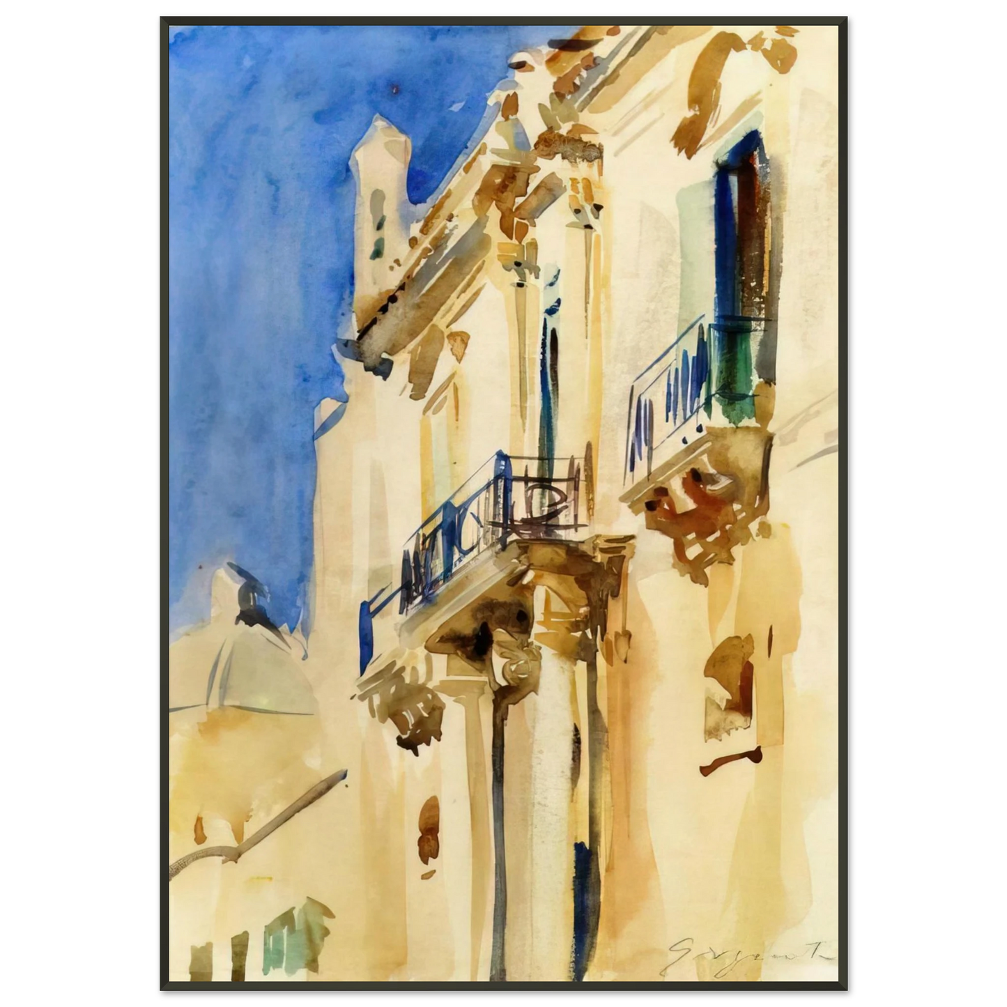 John Singer Sargent Facade of a Palazzo Girgente Sicily Framed Art Print – Aluminum Frame