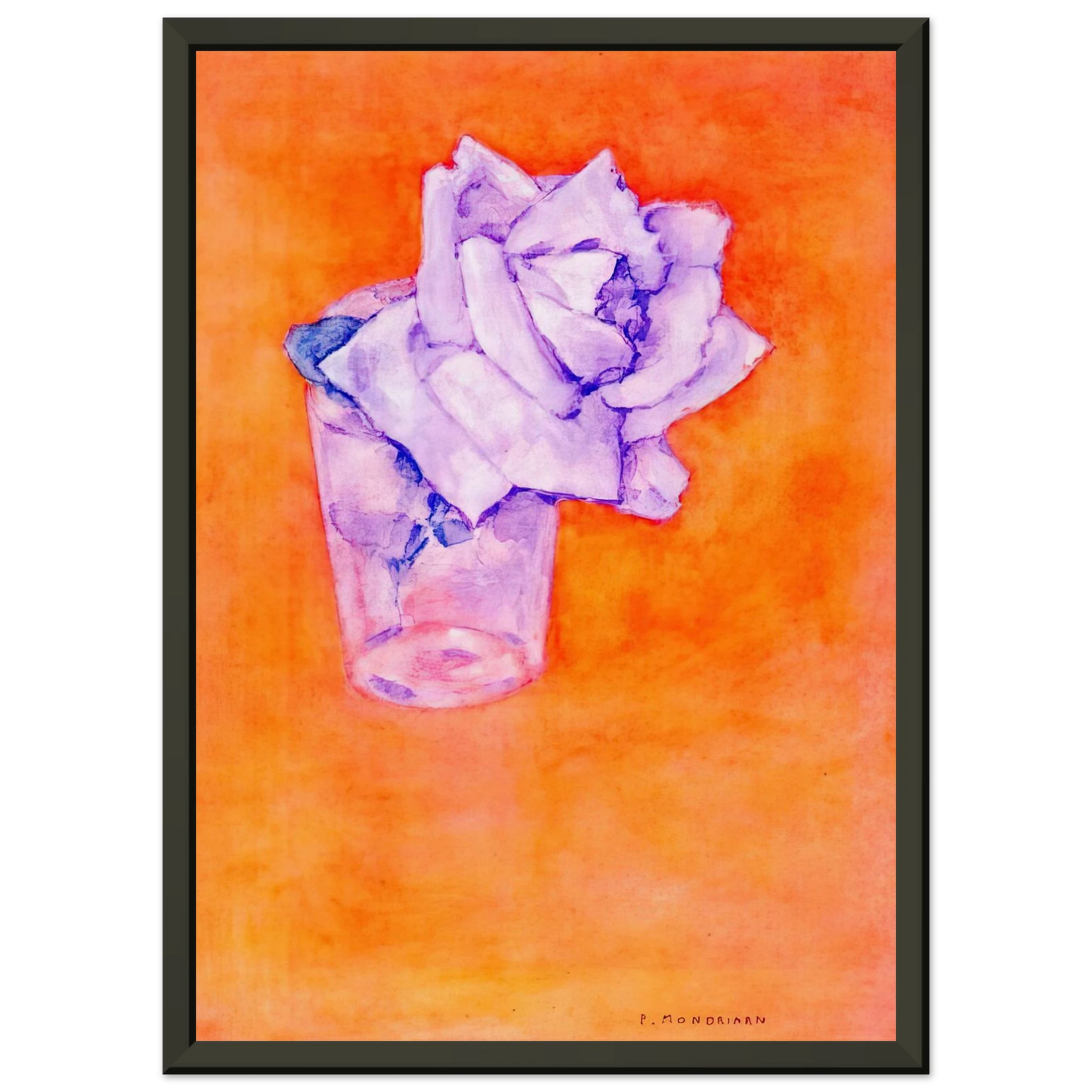Piet Mondrian White Rose in a Glass Framed Art Print – Aluminum Frame